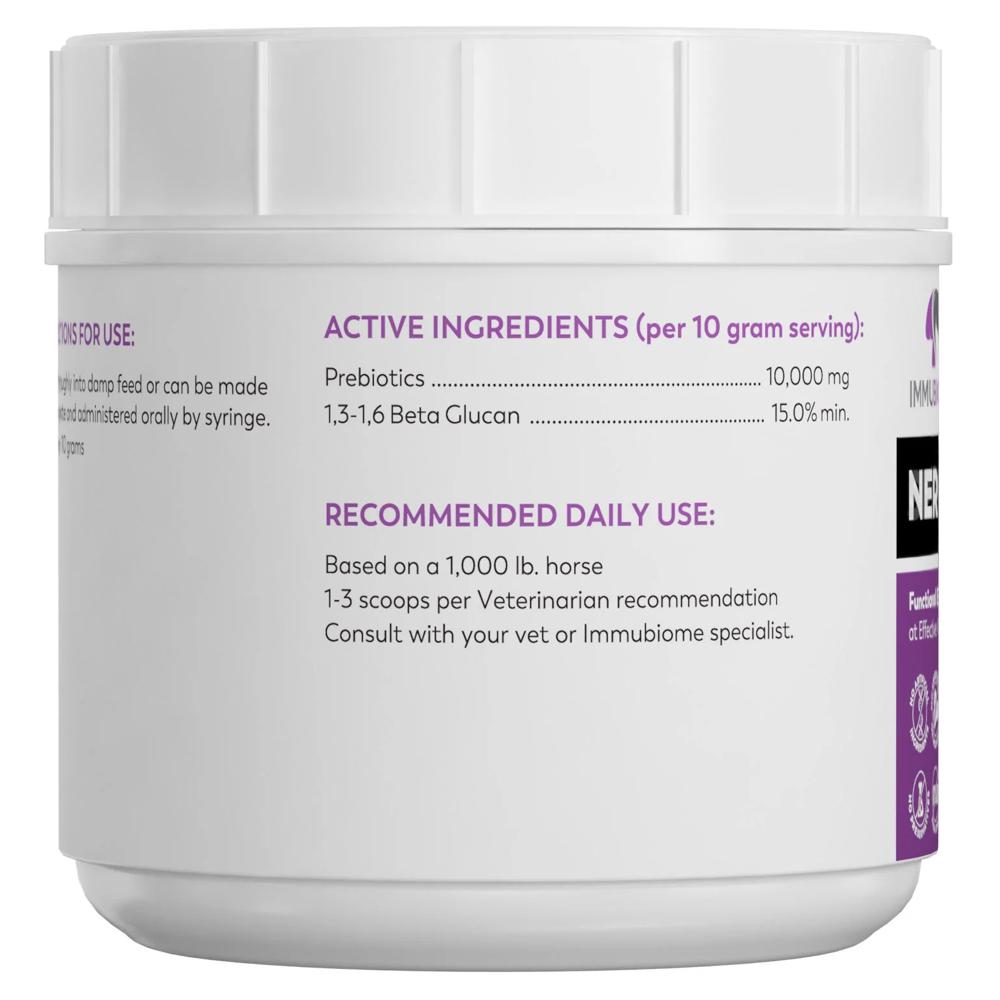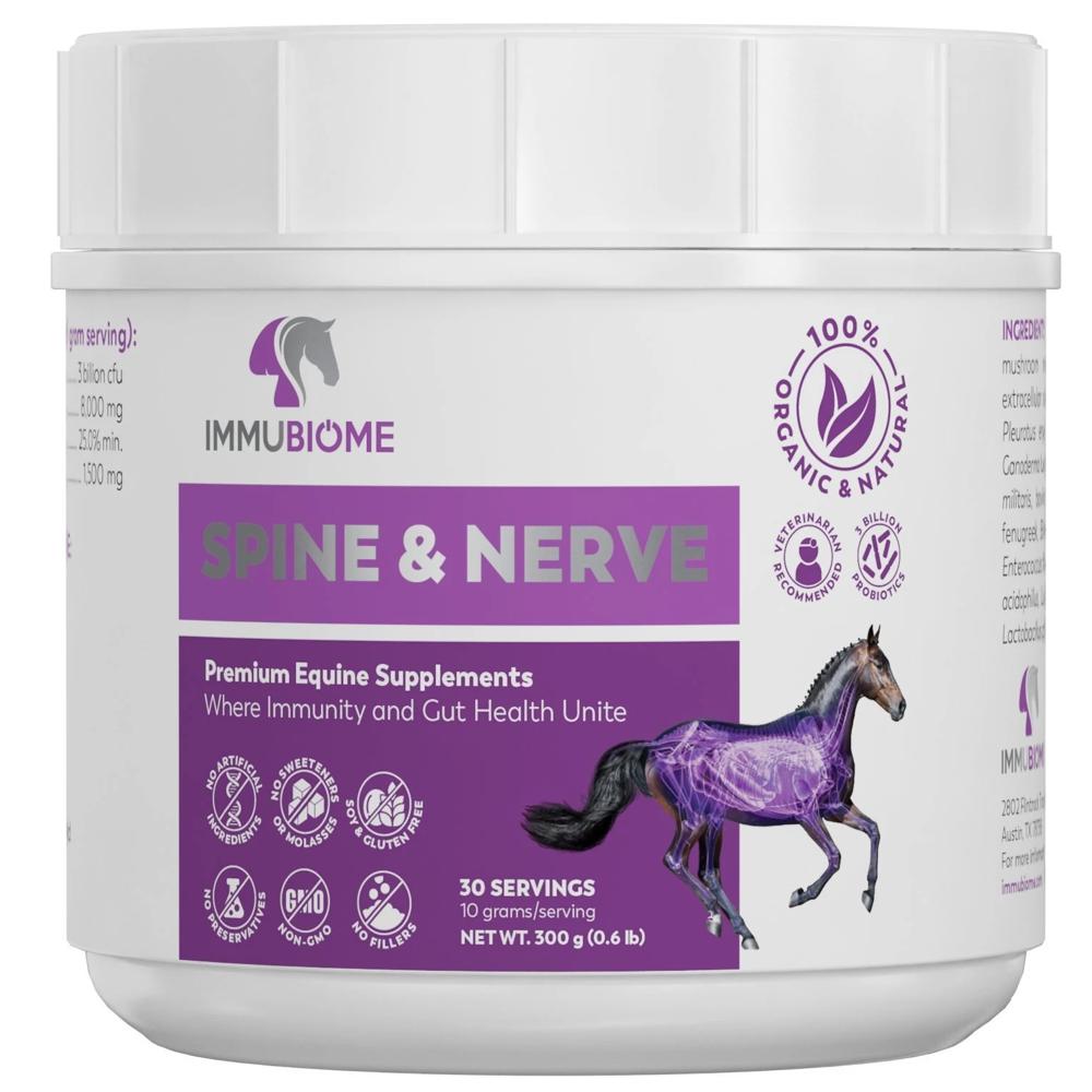 ImmuBiome Spine & Nerve is formulated to support spine and nerve related conditions. Often touted as ‘Nature’s Nutrient for the Neurons’, Lion’s Mane sets the stage for this formulation. Rounded off with powerful polysaccharides, antioxidants and prebiotics from five additional mushroom species, colostral fractions and select strains of probiotics, ImmuBiome Spine & Nerve is the “go to” nervous system blend preferred worldwide by top equine veterinarians.